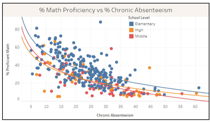 At the tutoring center where I work, potential customers commonly report that their kids are falling behind in school, particularly on standardized math tests. Students also often mention being chronically absent. I wanted to explore whether chronic absenteeism impacts math proficiency using public data from the